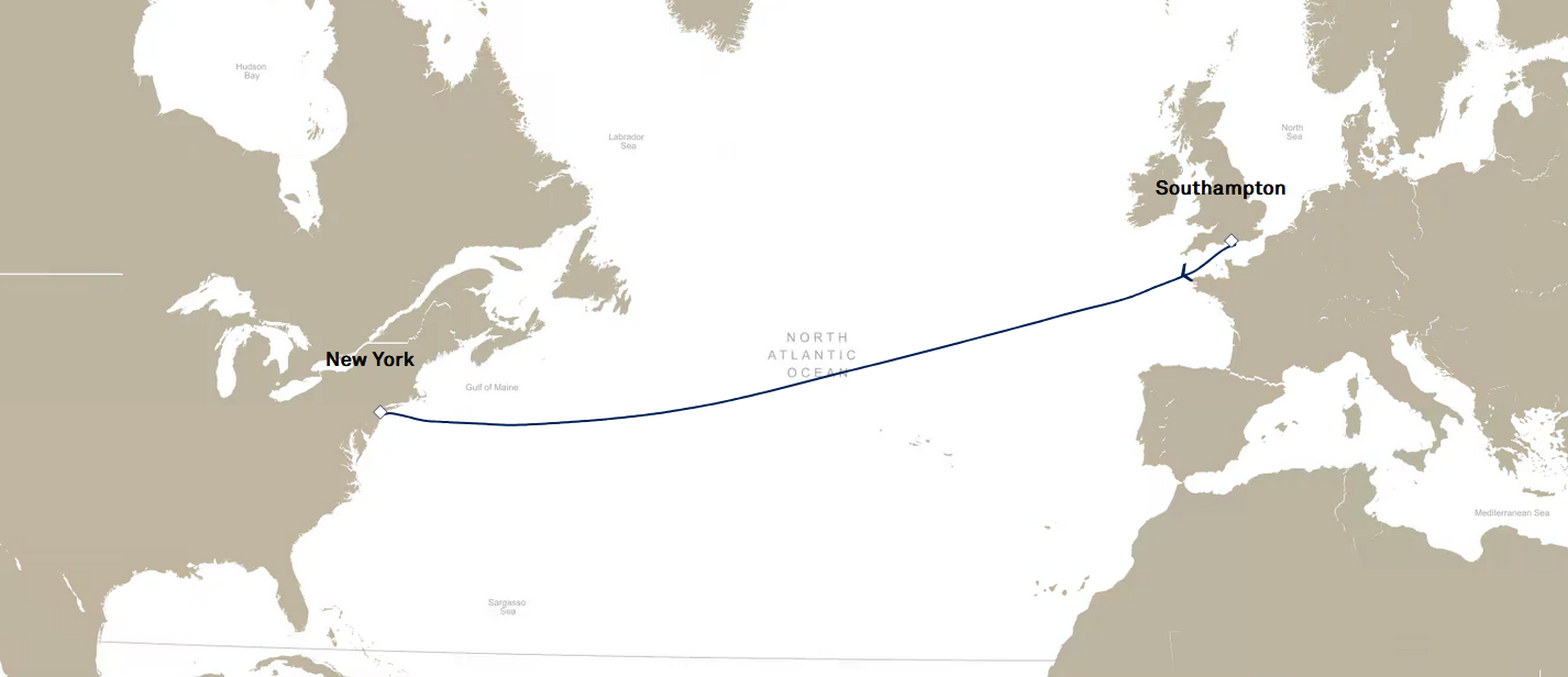 - 7 éjszakai szállás a hajón a kiválasztott kabinkategóriában, 1 éjszakai szállás Southamptonban ötcsillagos szállodában,