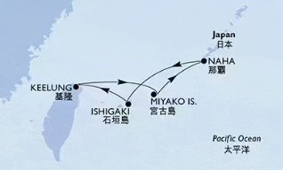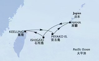Naha (Okinawa) Japan ~ Ishigaki Japan ~ Keelung (Taipei) Taiwan (China) ~ Miyako Island Japan ~ Naha (Okinawa) Japan