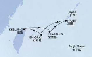 Keelung (Taipei) Taiwan (China) ~ Miyako Island Japan ~ Naha (Okinawa) Japan ~ Ishigaki Japan ~ Keelung (Taipei) Taiwan (China)