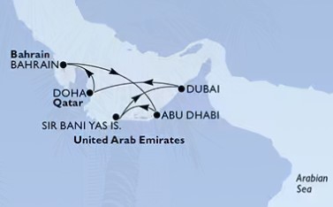 Doha Qatar ~ Bahrain Bahrain ~ At Sea ~ Abu Dhabi U. Arab Emirates ~ Sir Bani Yas Is U. Arab Emirates ~ Dubai U. Arab Emirates ~ Dubai U. Arab Emirates ~ Doha Qatar