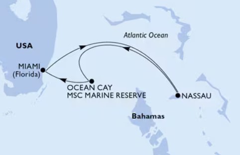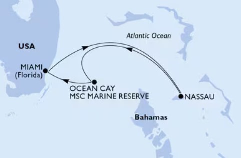 Miami United States ~ Nassau Bahamas ~ Ocean Cay MSC Marine Reserve Bahamas ~ Miami United States