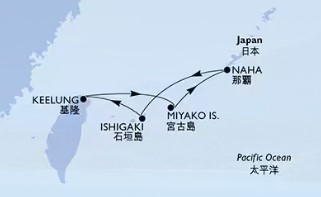 Naha (Okinawa) Japan ~ Ishigaki Japan ~ Keelung (Taipei) Taiwan (China) ~ Miyako Island Japan ~ Naha (Okinawa) Japan