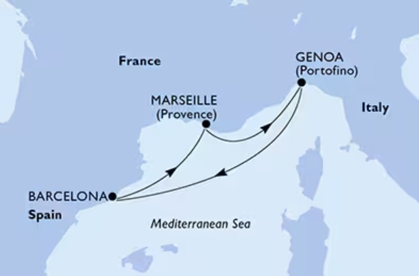 Marseille (Provence) France ~ Genoa (Portofino) Italy ~ Barcelona Spain ~ Marseille (Provence) France
